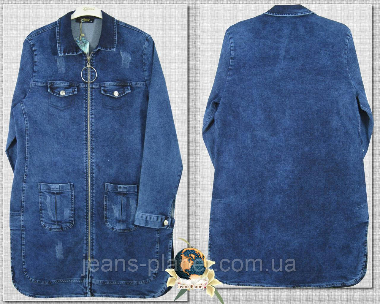 Елегантний жіночий джинсовий кардиган синього кольору в розмірах середній батал.